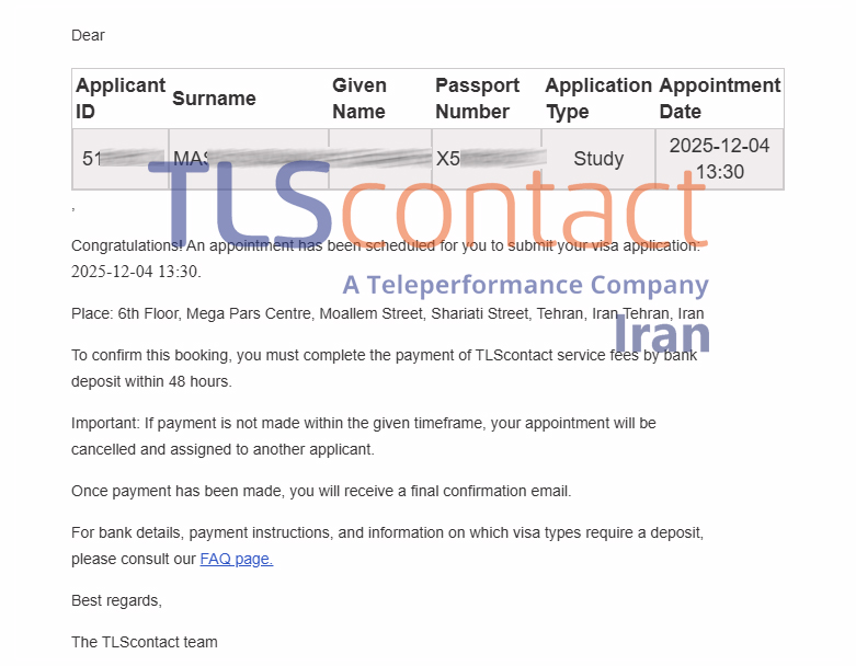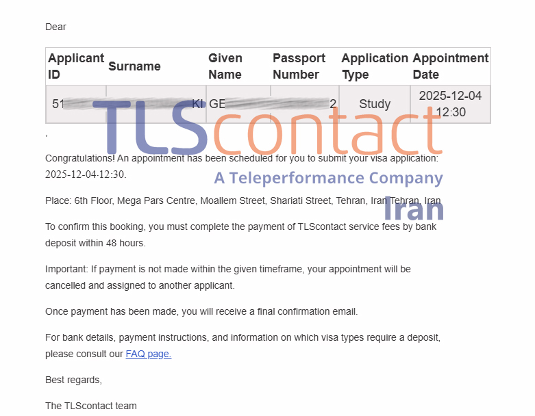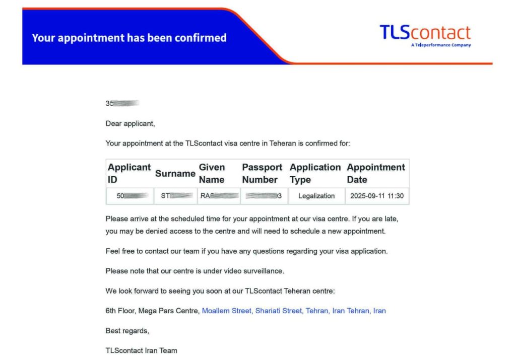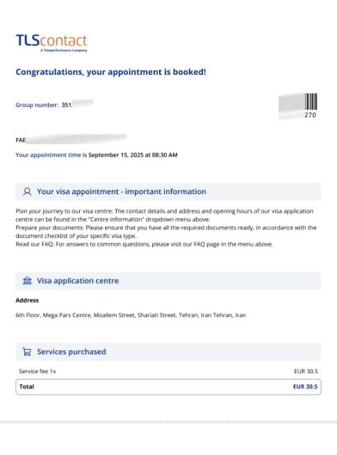 با توجه به تغییر کارگزاری آلمان از ویزامتریک به TLScontact برای دریافت وقت سفارت فرم زیر را تکمیل کنید. ما برای دریافت وقت با شما تماس خواهیم گرفت.
